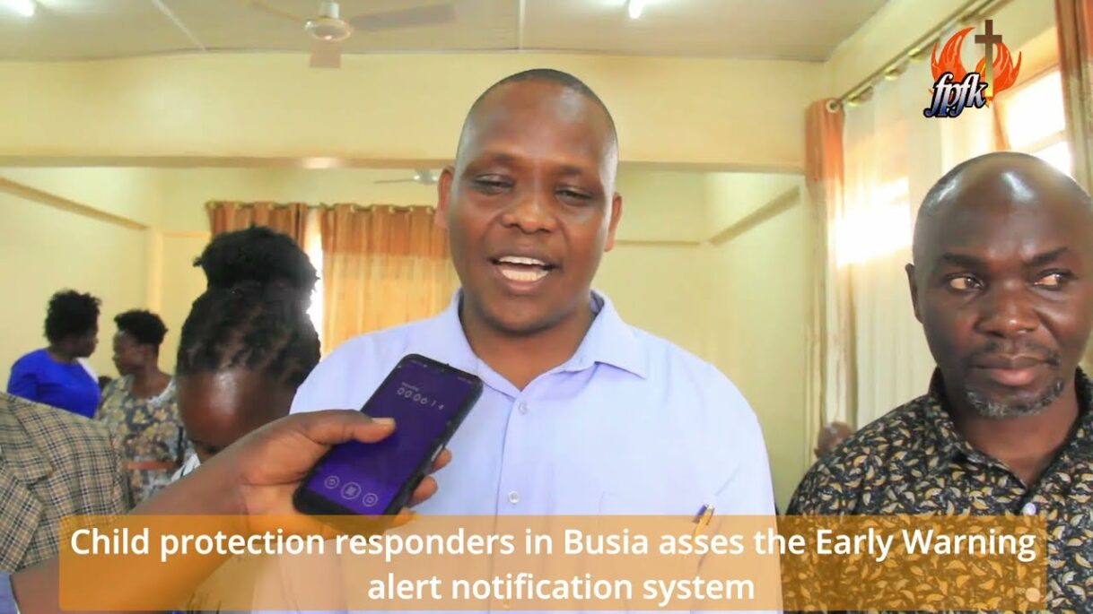 Child Protection Responders in Busia asses the Early Warning alert Notification system